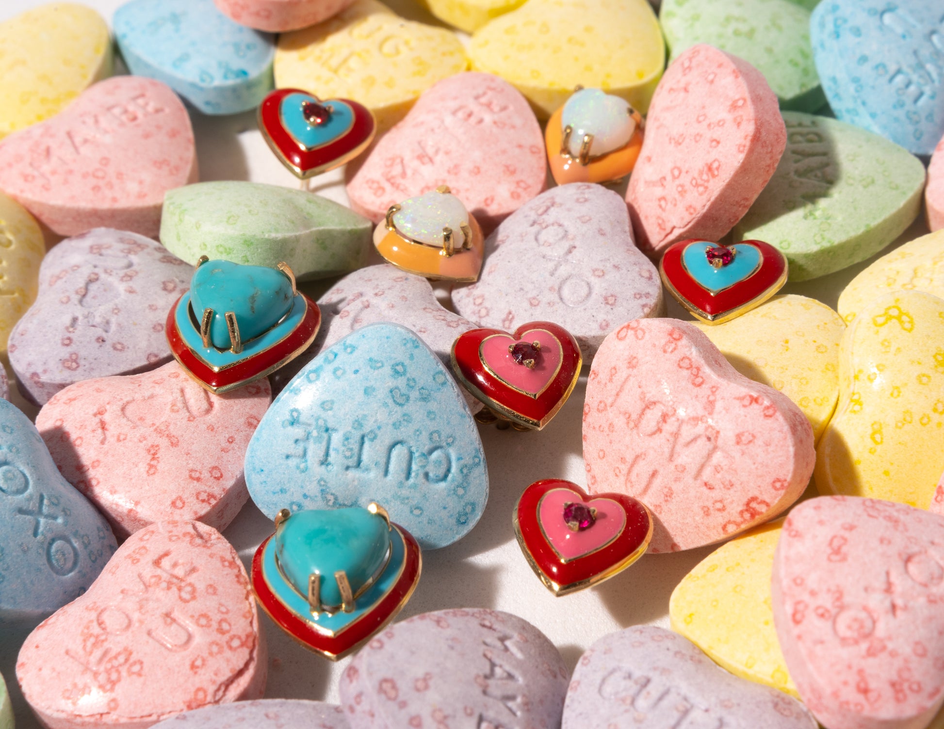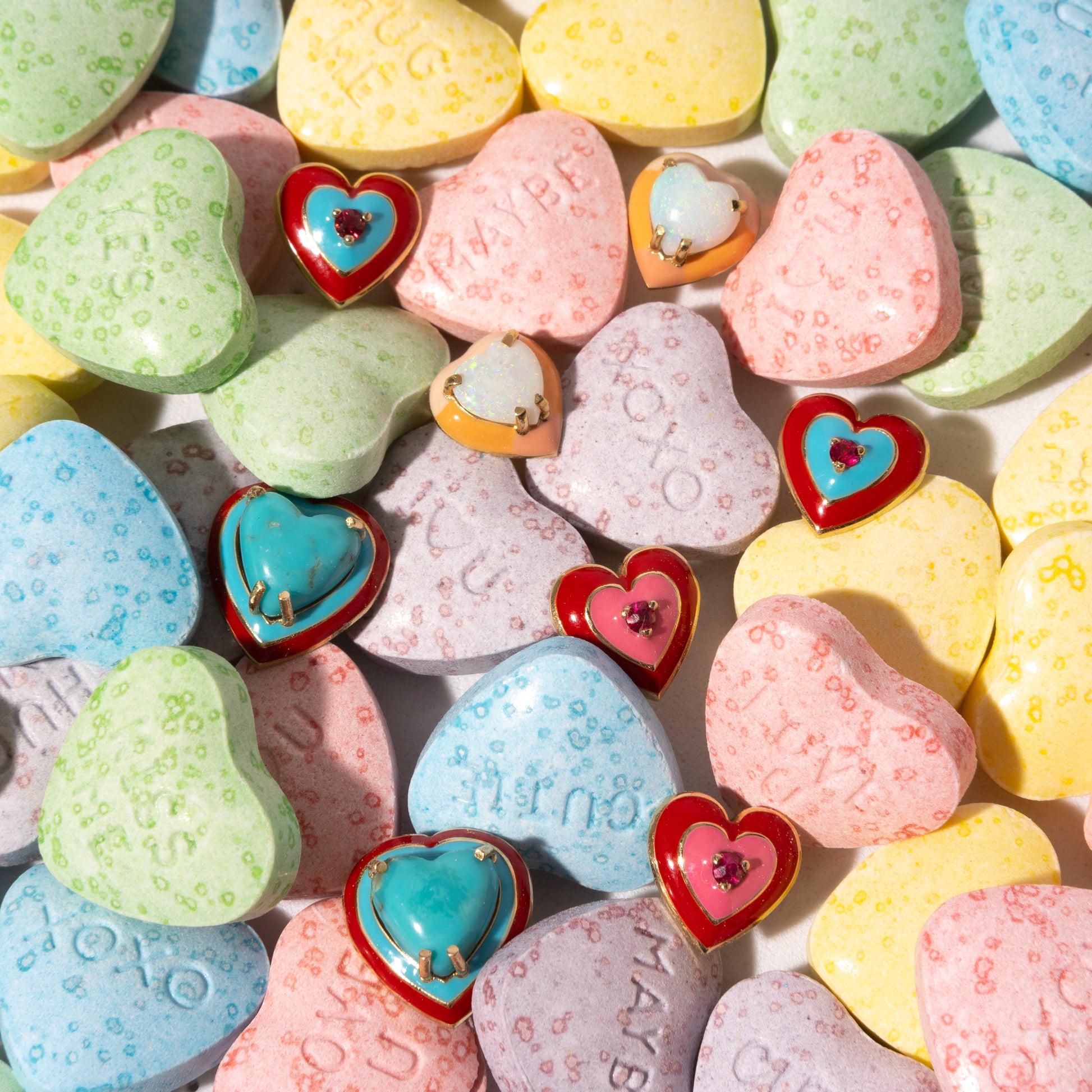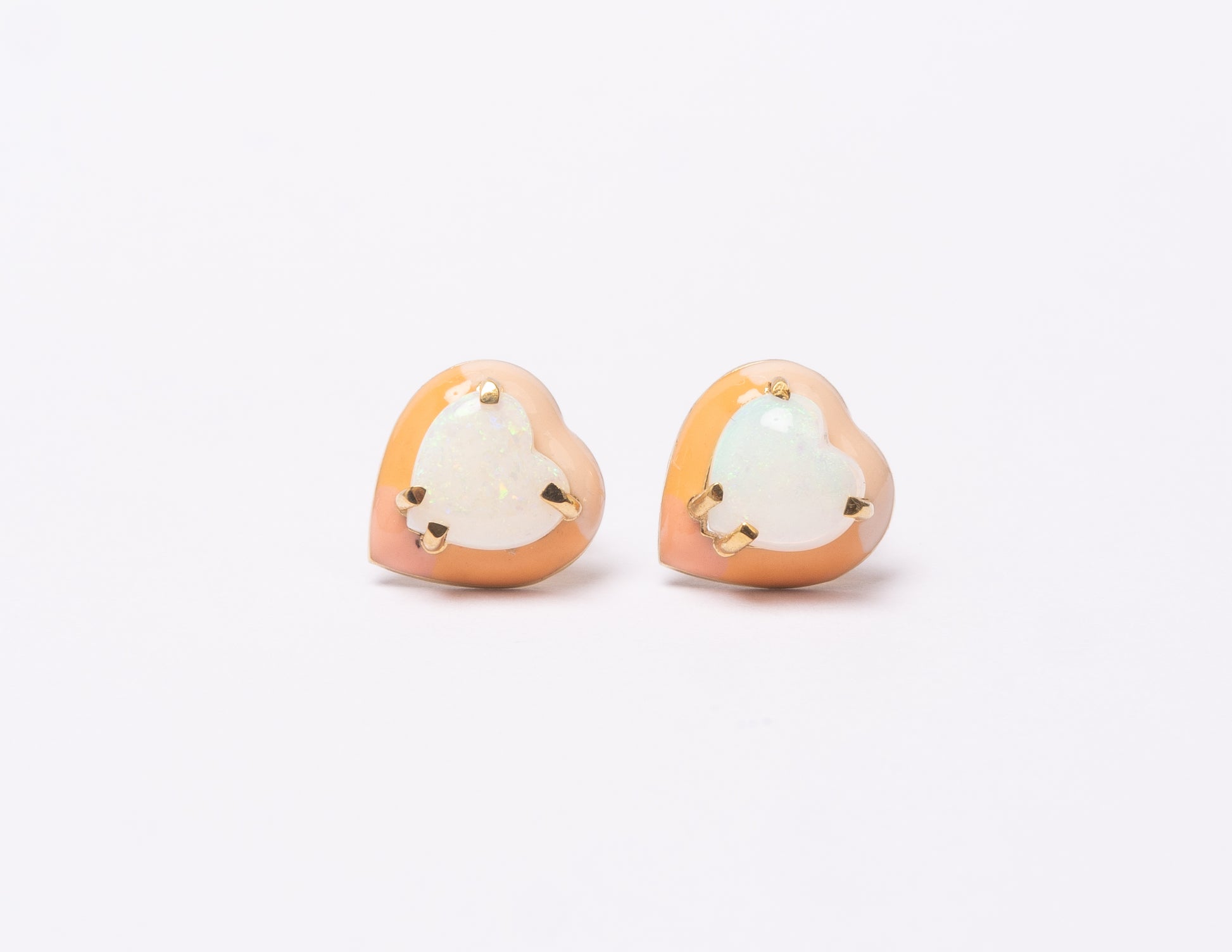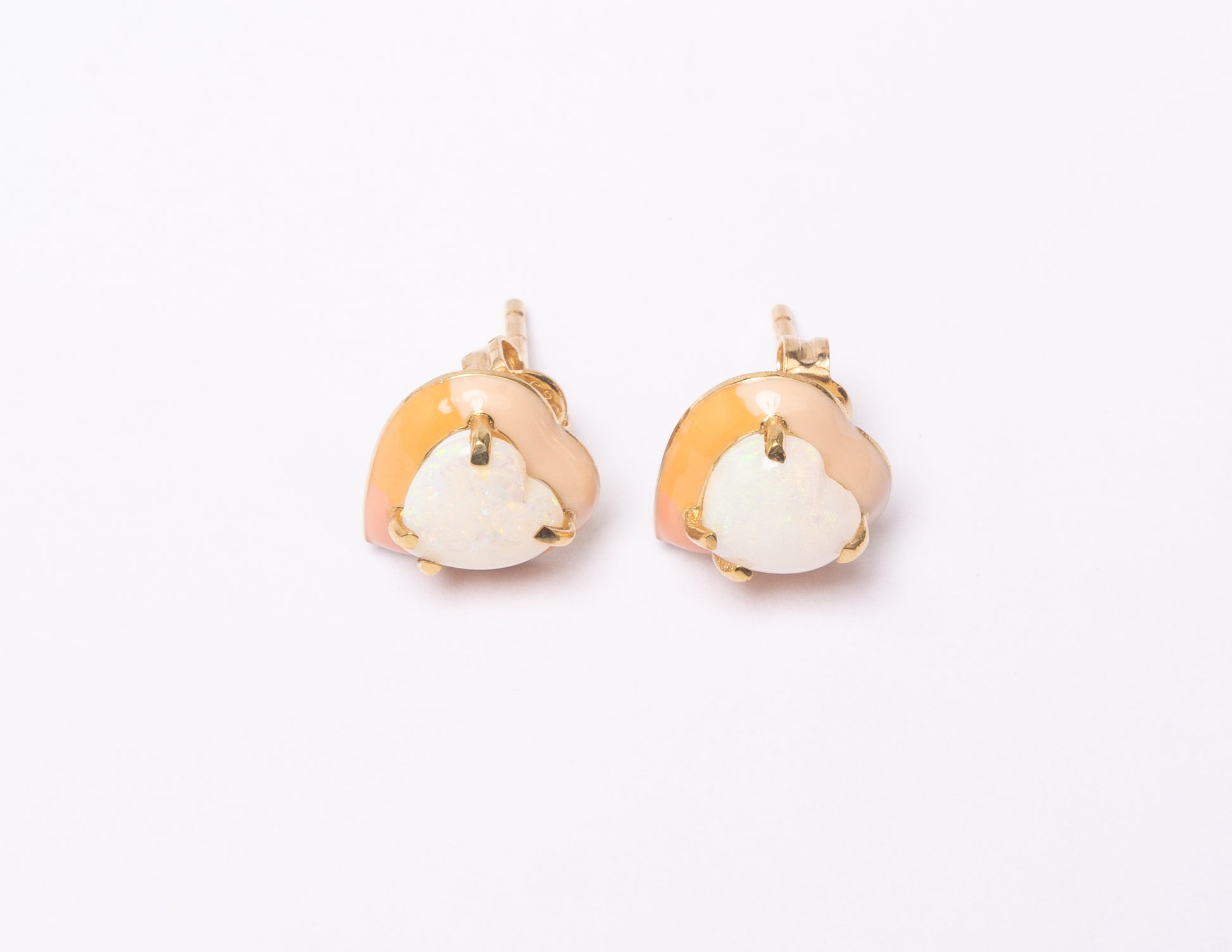 14K Gold Australian Opal Heart + Ombré Sunset Pastel Enamel Sweetheart Stud Earrings