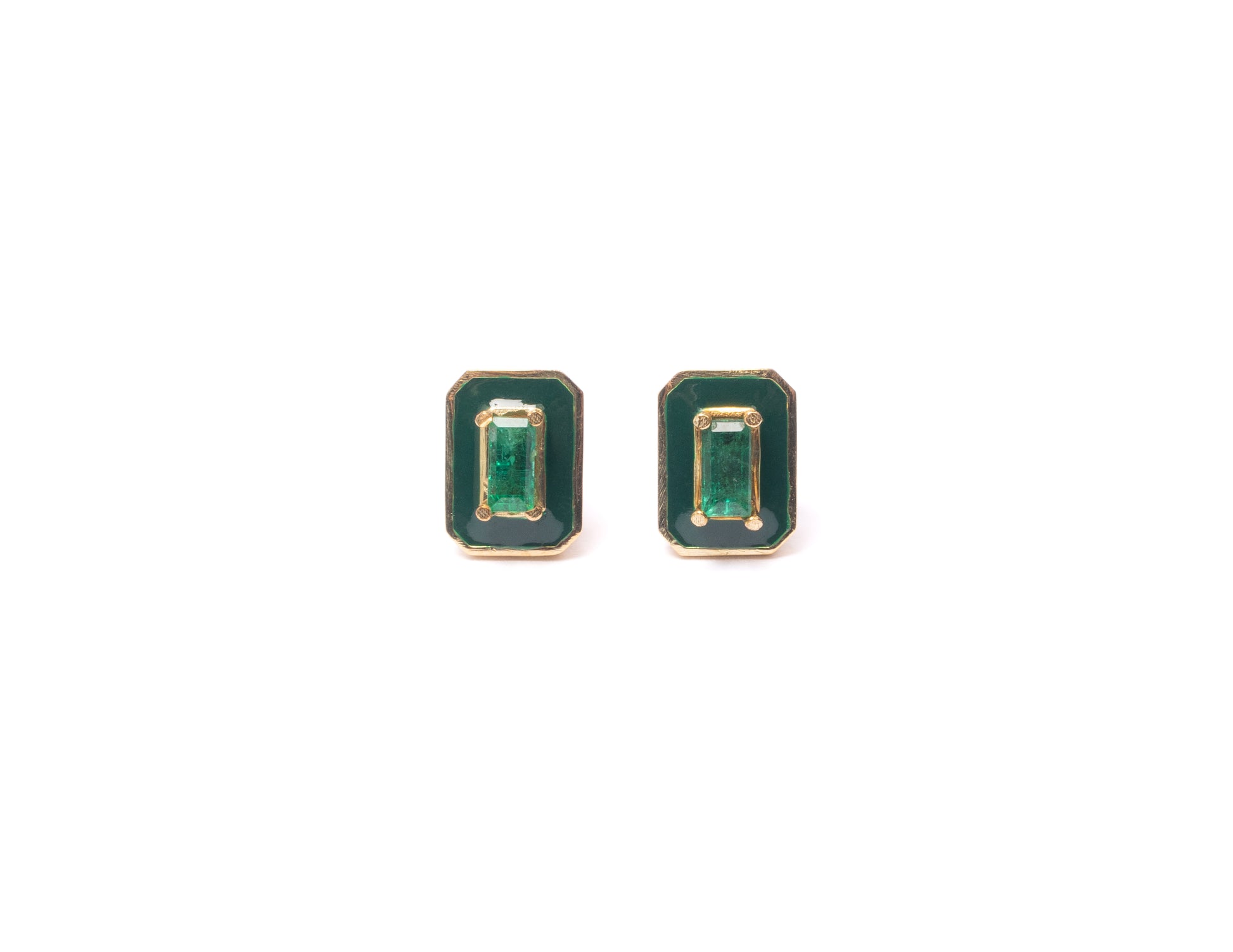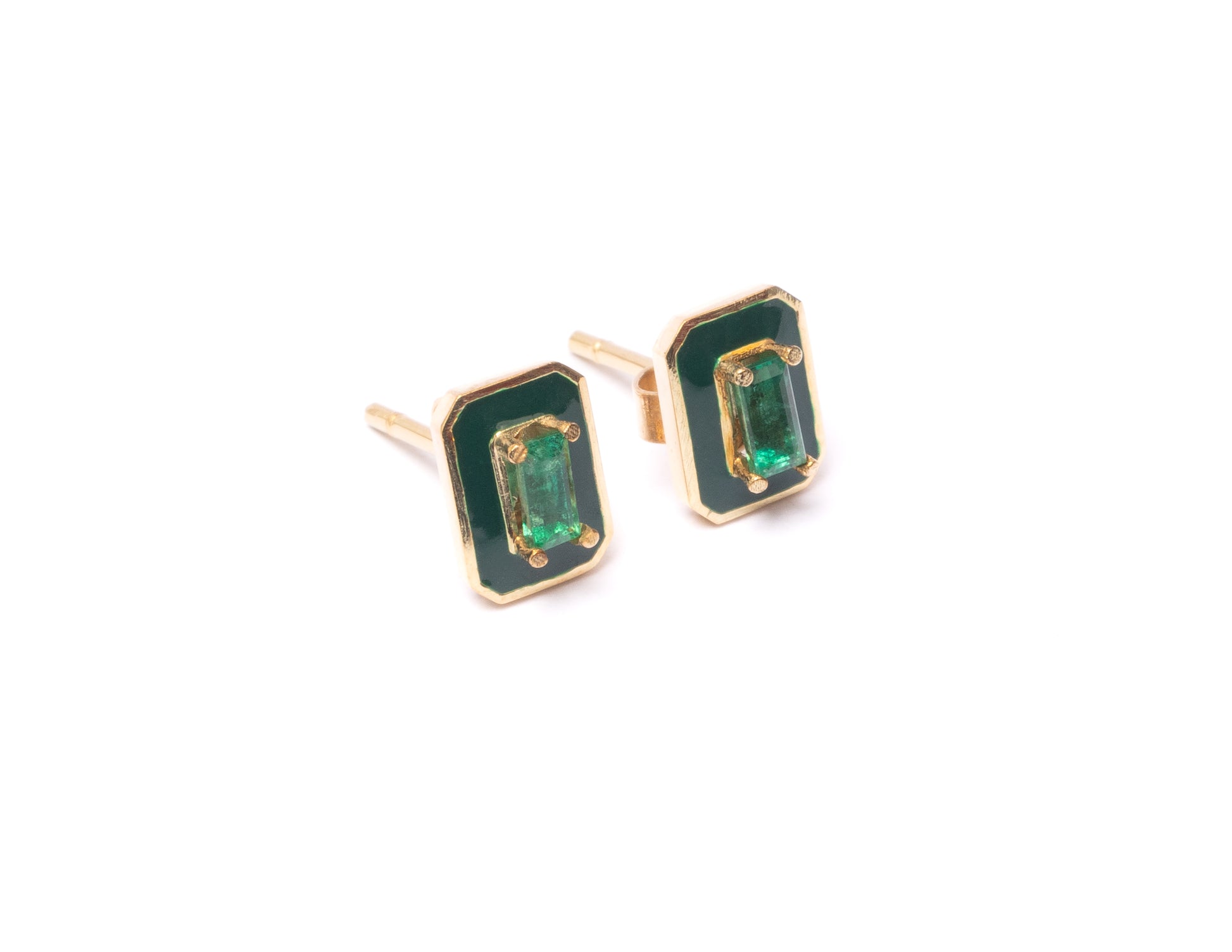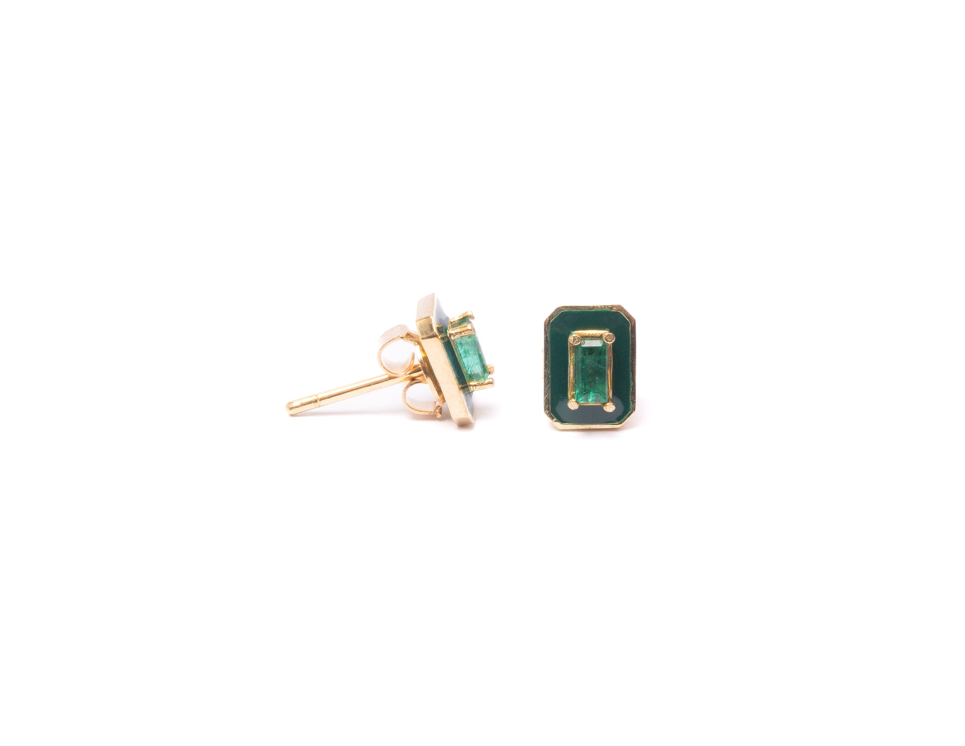14K Gold Emerald Baguette + Green Enamel Valley Girl Stud Earrings