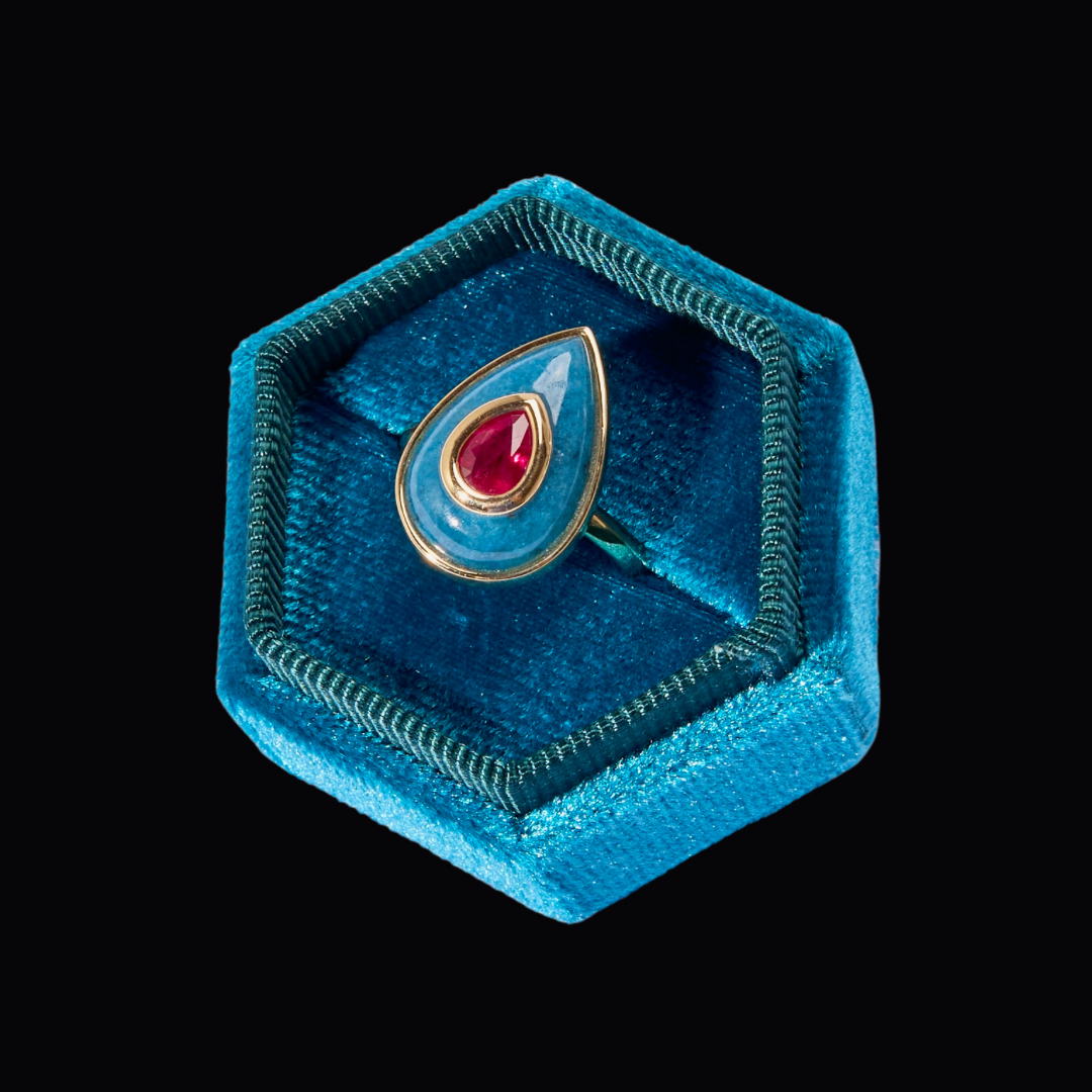 14K Gold Ruby + Trolleite Teardrop Cocktail Ring