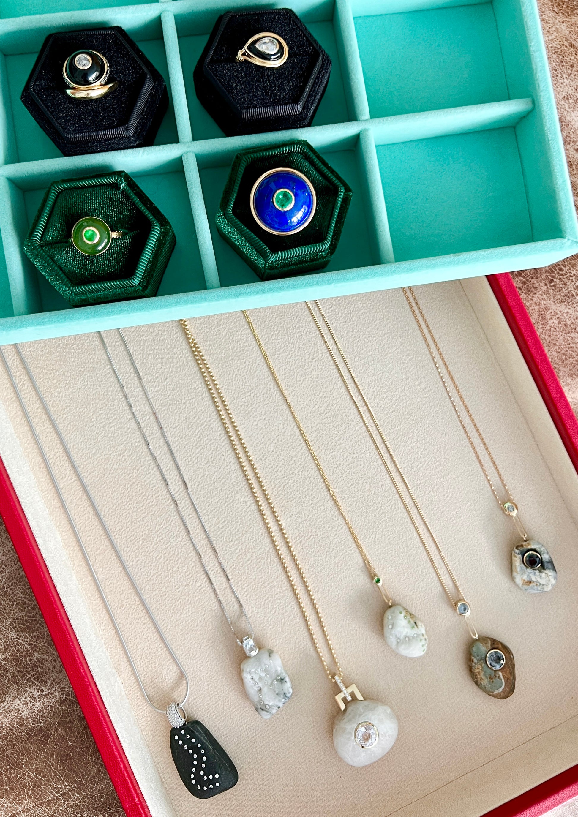 We celebrate the so-called "imperfections" that make us humans - and gemstones! - unique and special. Each piece is a handmade original, with natural variances that make it as one-of-a-kind as the person rocking it.