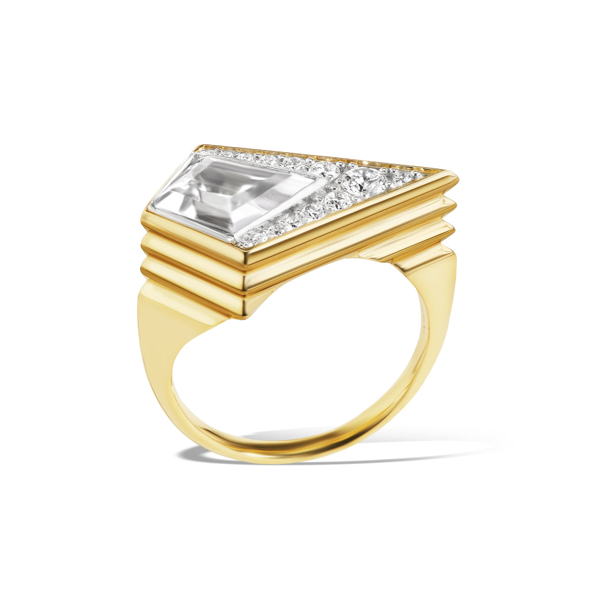 18K Gold Diamond + Arkansas Crystal Quartz Kite Cocktail Ring