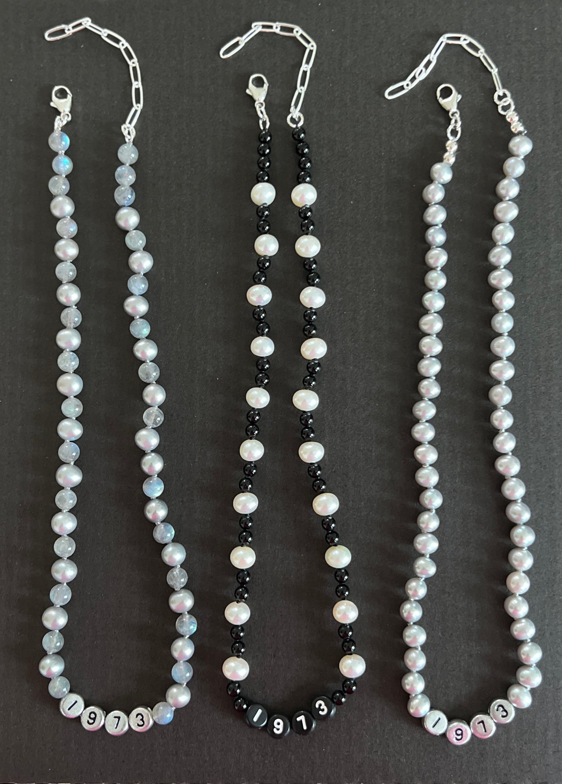 100% of proceeds from this collection of 1973 gemstone // pearl candy necklaces, hand-knotted on silk cord, will be donated to abortion funds. (To donate directly nationally, or find your local fund: https://abortionfunds.org/funds/)