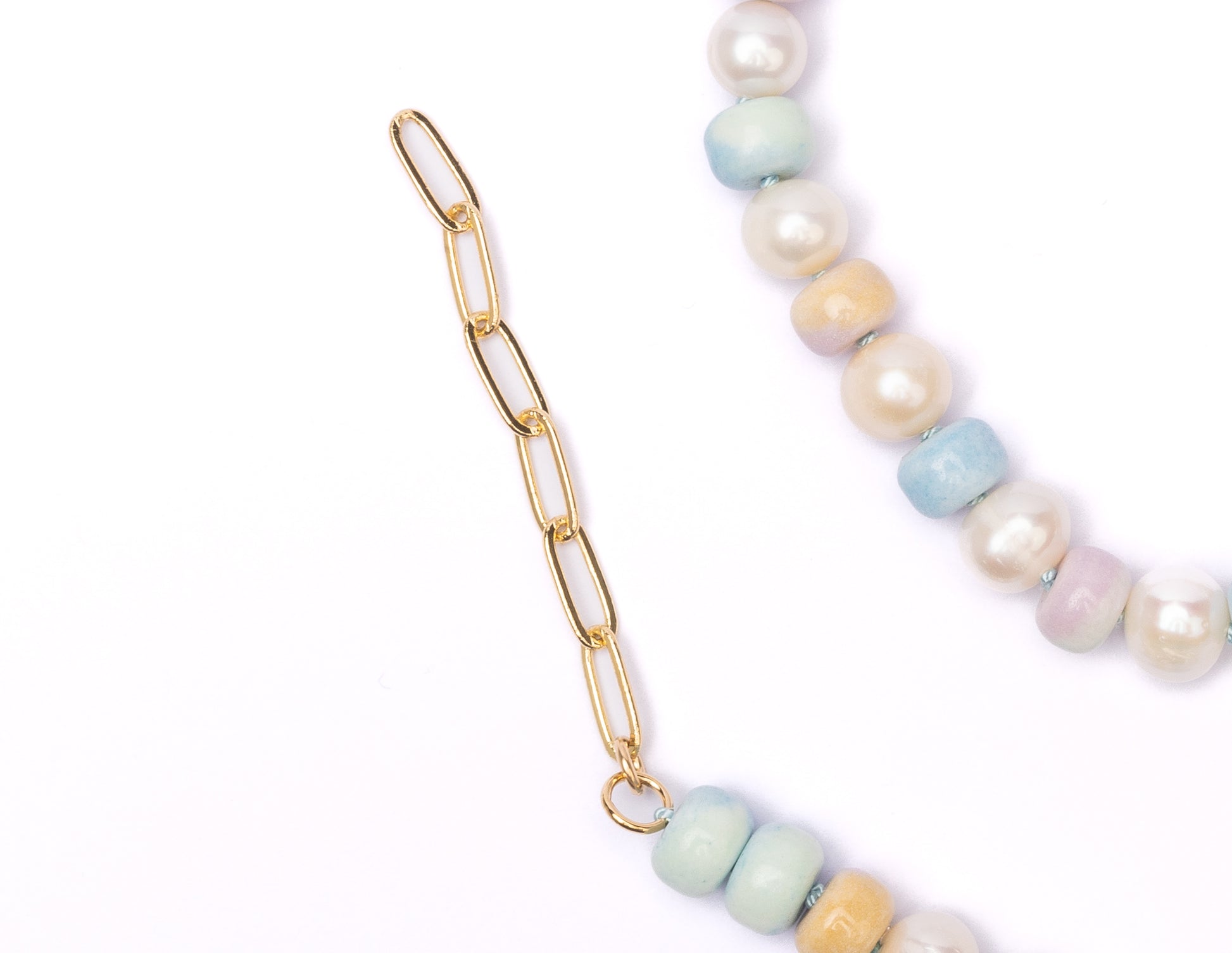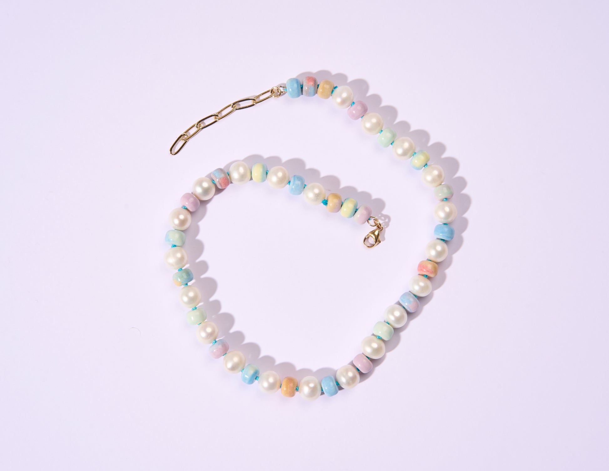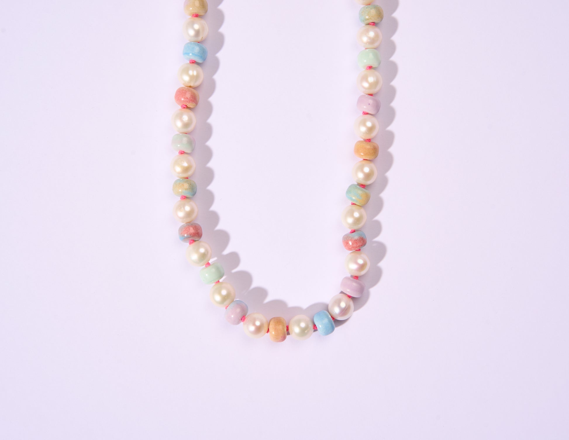 Retro Ombré Pastel Rainbow + Freshwater Pearl Tie Dyed Gemstone Candy Necklace